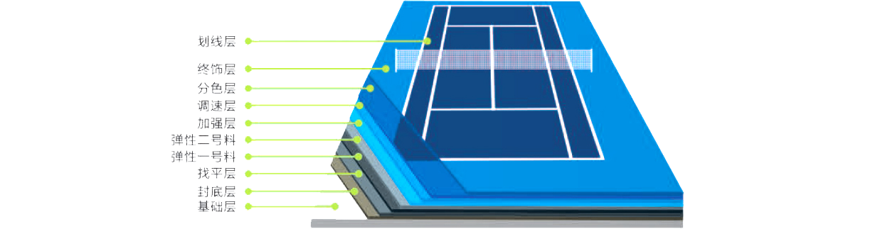 丙烯酸材料源自欧美原材料与技术,精良的品质保证采用100%丙烯酸乳液与自然界纯正矿物质的配方,天然矿物质合成的高品质丙烯酸涂料适用于专业级网球场场地,含有天然矿物纤维,使得场面高度耐磨防滑,同时又能快速移动,让网球运动更加舒话、精彩。